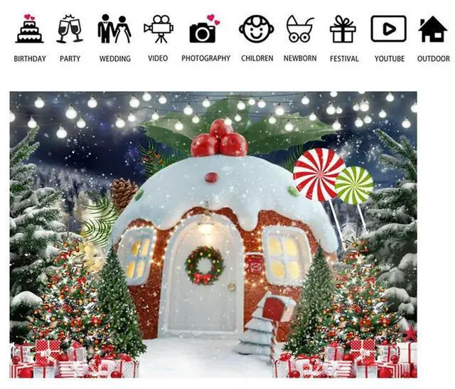 300X200cm Christmas Background Cloth Christmas Snow House Multifunctional Convenient Photography Background Cloths-Elect