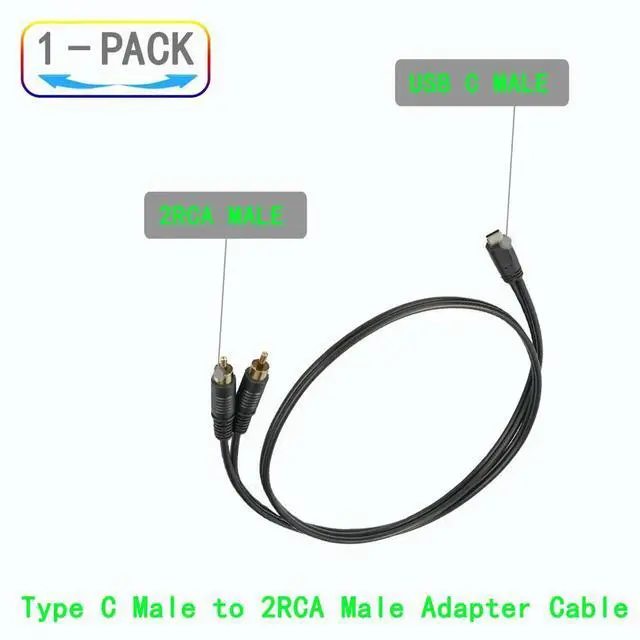 1pc USB Type-C Male to Dual 2 RCA Male Stereo Audio Converter Y Splitter Cable for Power Amplifier Car Home Theater Speaker