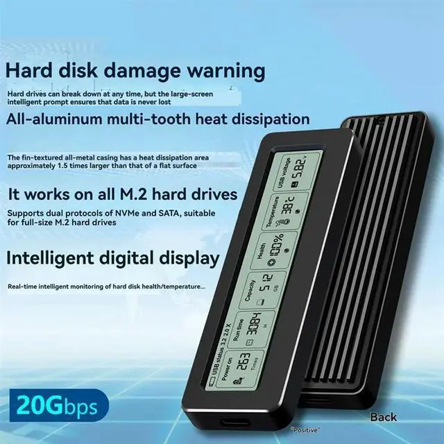 USB 3.2 Gen2 Type-C 20Gbps M. 2 NVME SSD Case Pcie Enclosure Disk Box Tool Free M. 2 SSD Case NGFF Enclosure