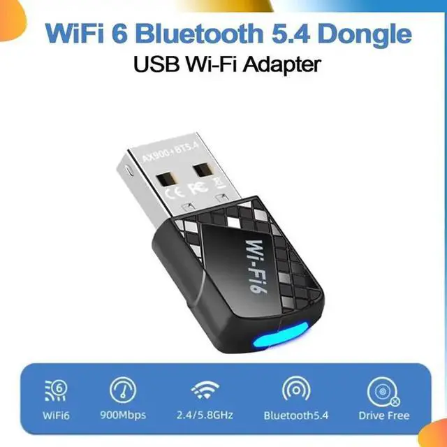 AX900 USB 6 Bluetooth 5.4 Adapter 2 In 1 Dongle Dual Band 2.4G 5Ghz Network Wireless Receiver Free Driver