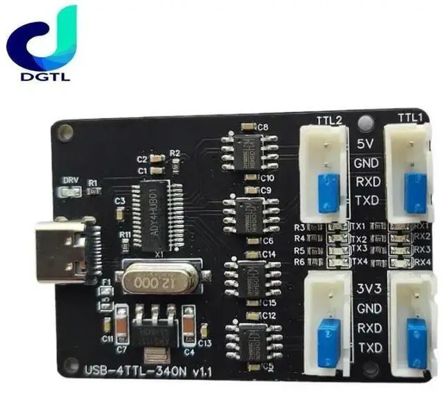 Four USB-to-TTL serial ports CH340N drags four independent HUB module Type-C ports