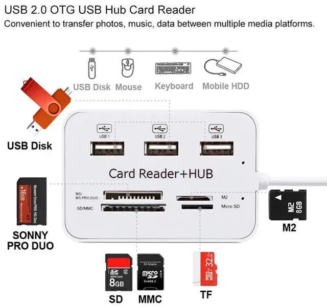 USB Hub 2.0 3 Ports TF Micro SD Card Reader Slot USB Combo Multi All In One USB Splitter Cables For Laptop Macbook Accessories