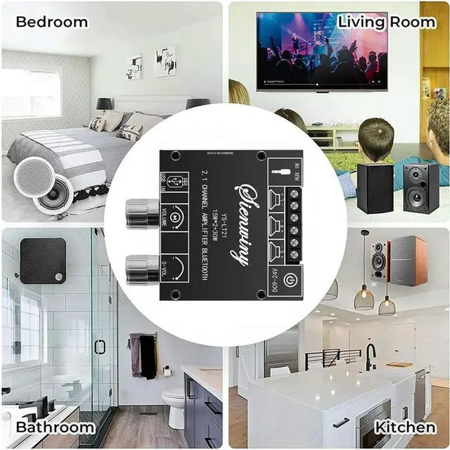 YS-LT21 2.1 Channel Bluetooth Amplifier Board 15W+15W+30W with Subwoofer Knob Adjusting Encoder Audio Module DC9-24V Rich