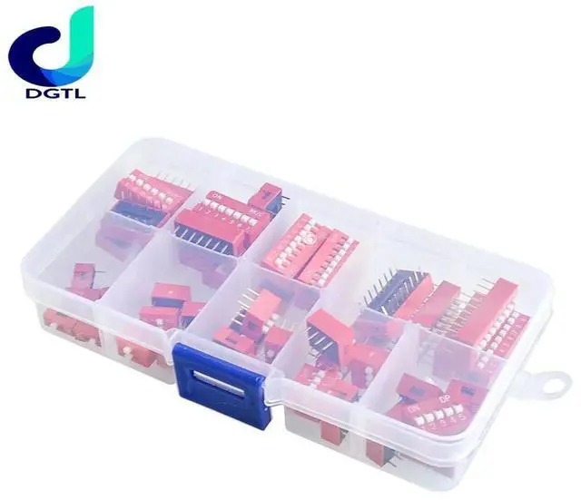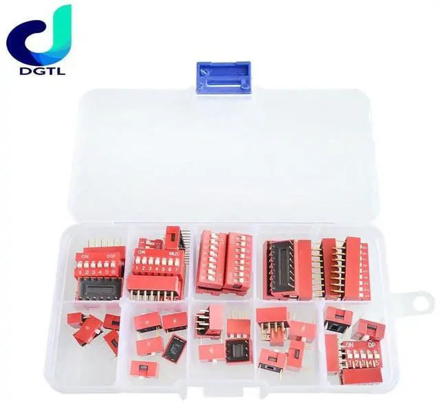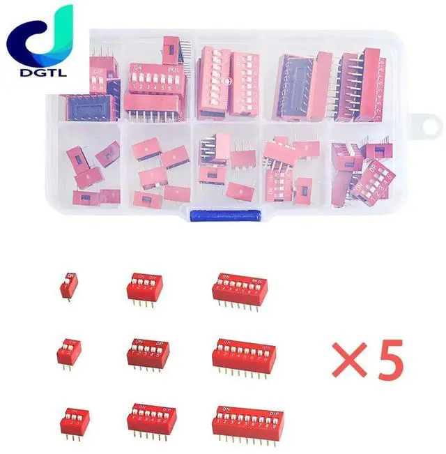 45PCS/LOT Dip Switch Kit In Box 1 2 3 4 5 6 7 8 9Way 2.54 mm Toggle Switch Red Snap Switches Mixed Kit Each 5PCS Combination Set