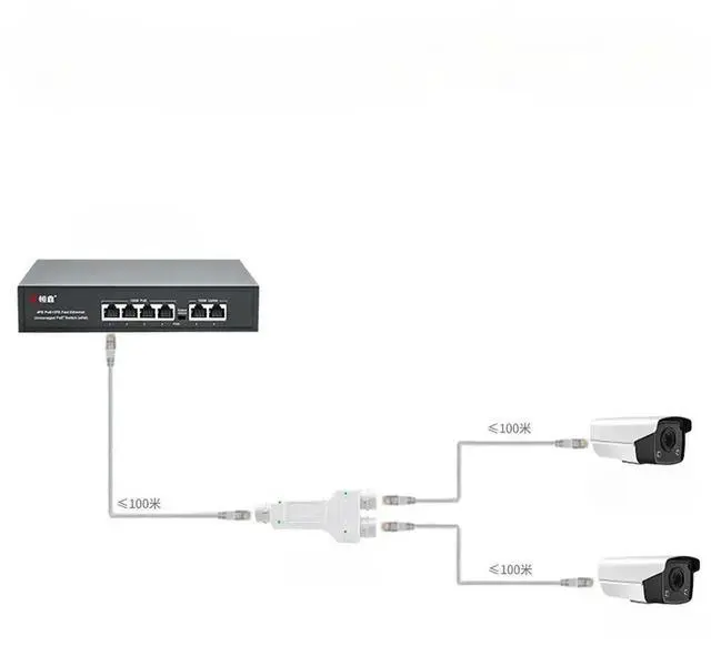 2 Port Waterproof POE Repeater IP66 10/100Mbps 1 to 2 PoE Extender with IEEE 802.3 af/at 48V Outdoor for POE Switch Camera