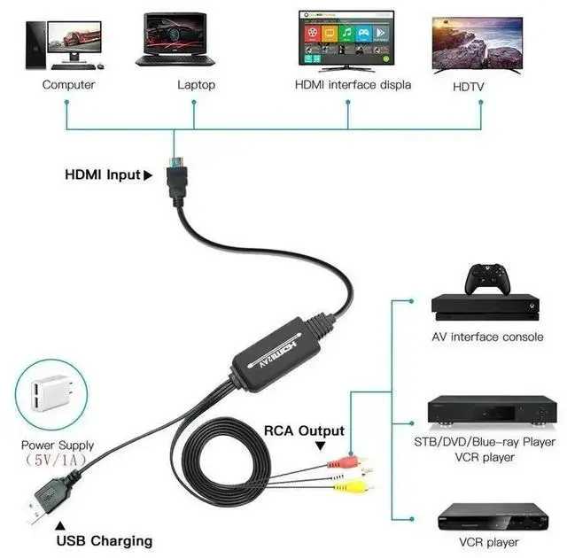Practical Audio Video Signal Receiver for Projector Monitor VCR Player 1.8M Video Cable Adapter No Power Converter