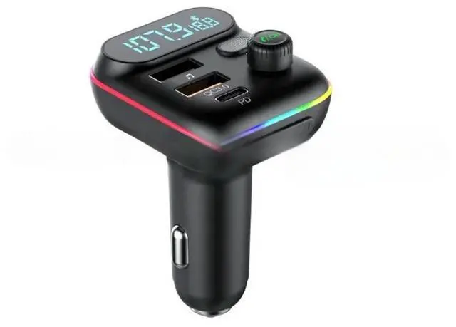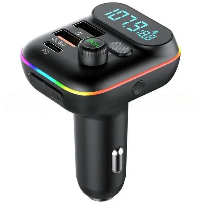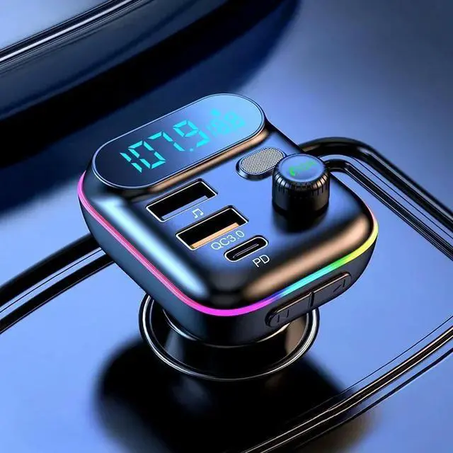Car Fast Charge Bluetooth 5.0 FM Transmitter PD Dual Player Music Type-C Colorful Ambient MP3 Light Cigarette Lighter USB C0E3