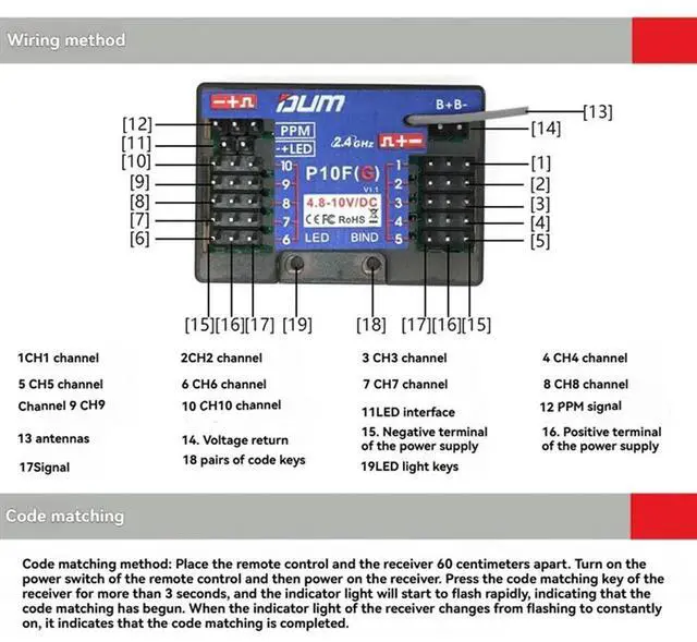 P10F 10CH Mini Receiver With Voltage Feedback PPM Signal Output Optional Gyroscope For RC Car Boat With Gyroscope