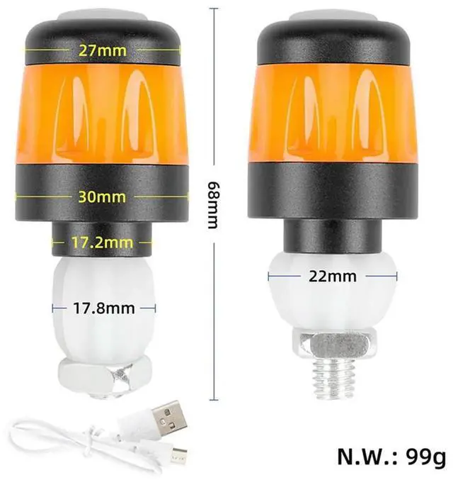 2Pcs Electric Scooter Handlebar Lights LED Warning Light Handlebar End Plugs Waterproof Turn Signal Lights Black+Orange Rich
