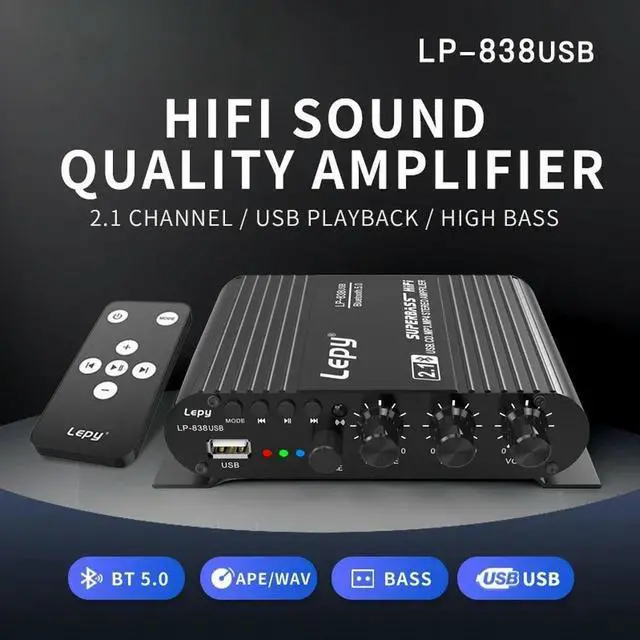 2.1 3 Channel Bluetooth 5.0 Amplifier With Remote Control Support USB Lossless Music Play Super Bass Digital Amp