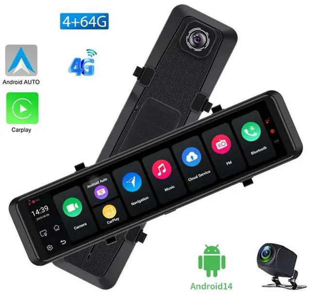 4G For Android 14.0 Dash Cam 8 Core Wireless Carplay & Android Auto Car DVR With ADAS Mirror Link 5G Bluetooth