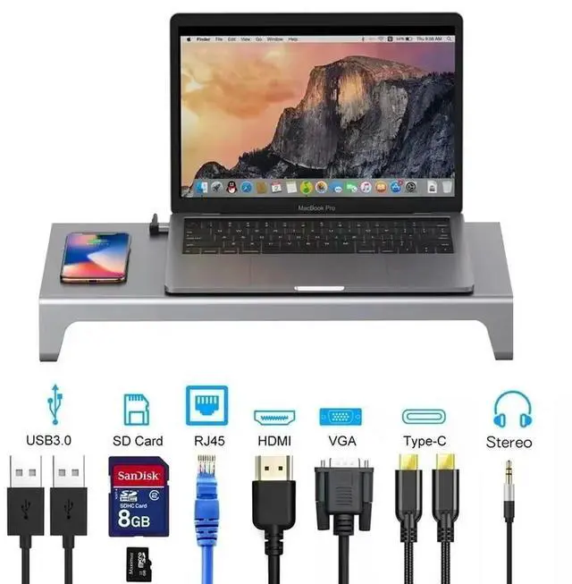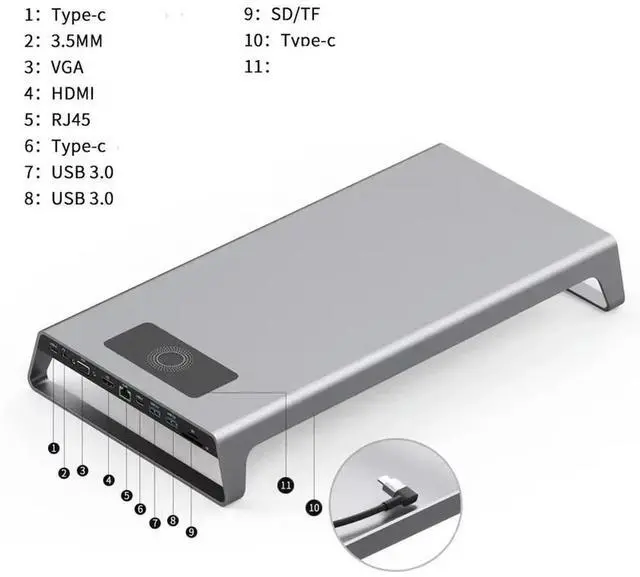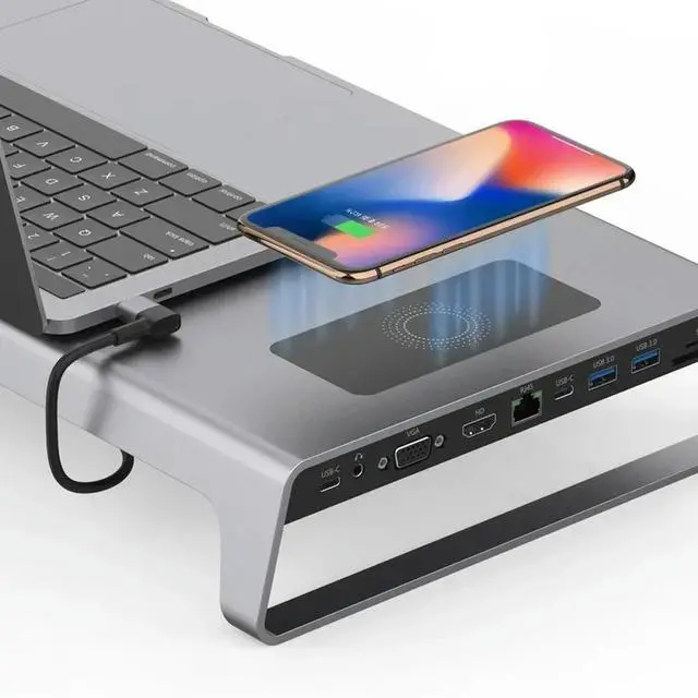 ?? 11-in-1 USB C Hub with Wireless Charger for MacBook, HDMI 4K Adapter, SD/TF Card Reader, PD Charging Port??