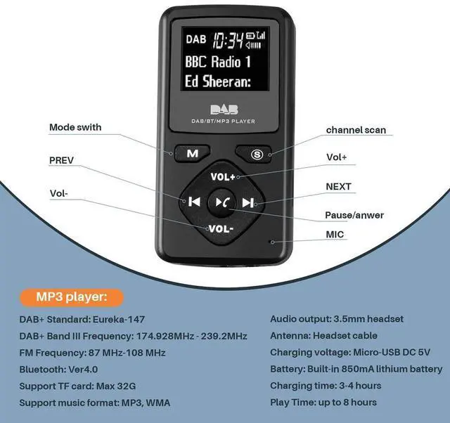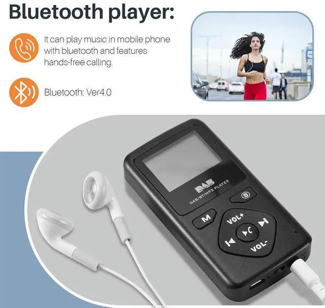DAB/DAB Digital Radio Bluetooth 4.0 Personal Pocket FM Mini Portable Radio Earphone MP3 Micro-USB for Home