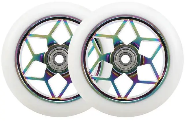 2 Pcs Scooter Accessories 110mm Scooter Wheels Colorful Pu Wheels Thick Stunt Car Wheels with Bearings(White) Rich