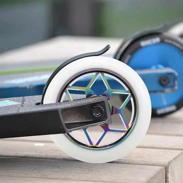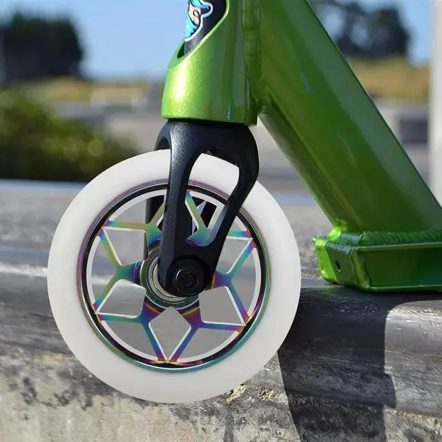 2 Pcs Scooter Accessories 110mm Scooter Wheels Colorful Pu Wheels Thick Stunt Car Wheels with Bearings (White) Rich