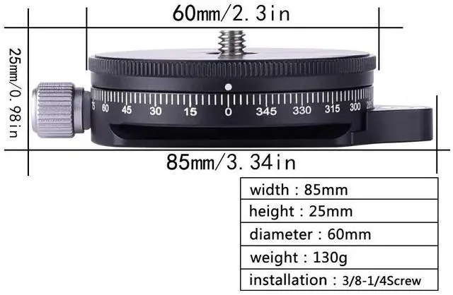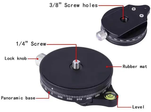 Camera Pan Base With Arca Swiss Style Plate, 0.95C m Screw Aluminum Panoramic Ball Tripod Head With Bubble Level, Load Capac