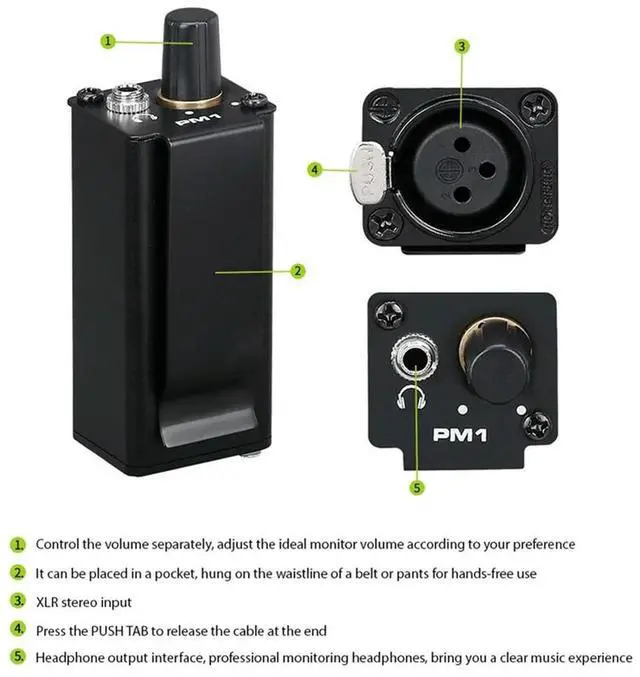 In Ear Monitor Amplifier With XLR Input Volume Adjustment Stereo Headphone Amp Plug Play