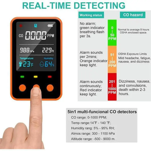 Carbon Monoxide Detector 5 In 1 Portable Travel Model With Integrated Mini CO Meter Altitude Temperature Humidity