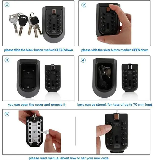 Indoor Outdoor Key Lock Box Push Button Combination Wall Mount Secure Storage Security Key Safe