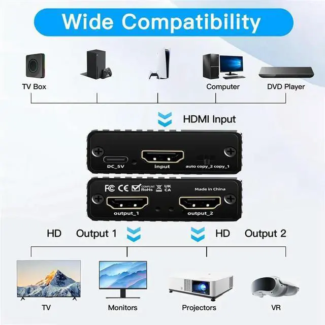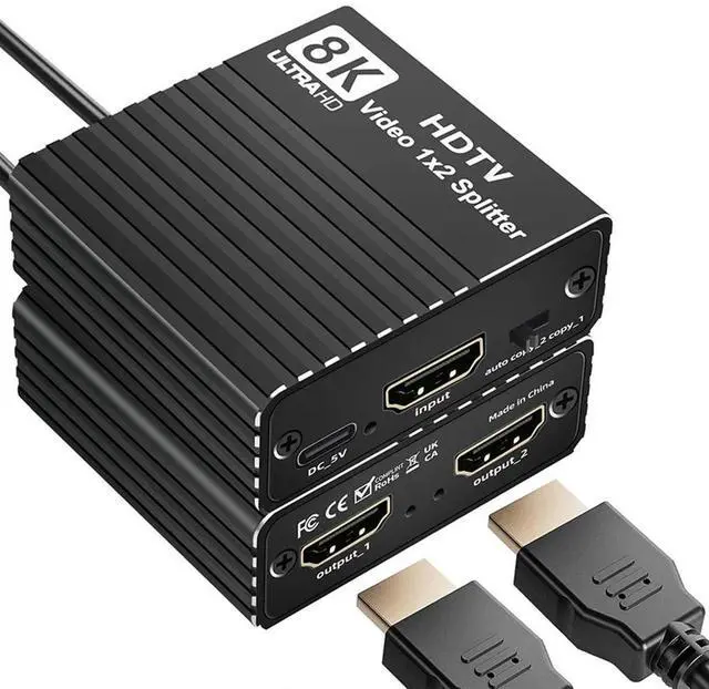 1 To 2 Splitter For 8K HDTV Ultra HD 2.1 8K 60Hz/4K 120Hz/1080P 240Hz EDID For PC Laptop Compatible Conputer