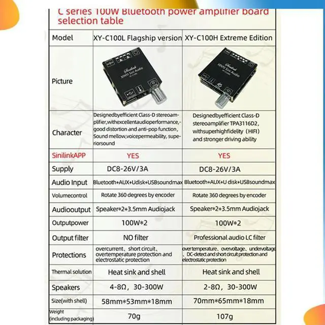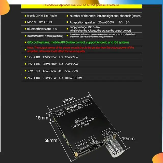 2X XY-C100L HIFI 100WX2 Bluetooth 5.0 High Power Digital Stereo Amplifier Board AUX USB AMP Amplificador Home Theater