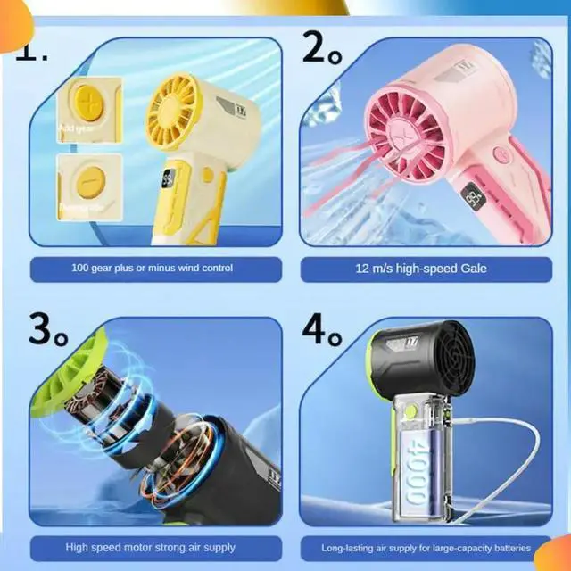 Handheld Turbo Fan 100 Speed Adjustable Outdoor Portable High Speed Fan Fast Cooling Fan Silent Fan For Work And Study