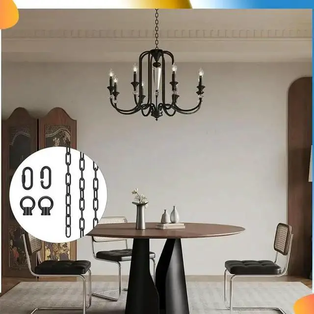 10 Feet Industrial Black Light Fixture Chain, Adjustable Extension Chain With Connection Locks For Light Fixture