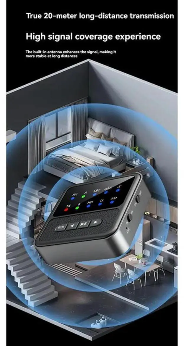 QCCV Bluetooth 5.4 Stereo Audio Receiver Transmitter 3.5MM AUX,Mic Wireless Adapter For Headphones TV PC Car Speakers