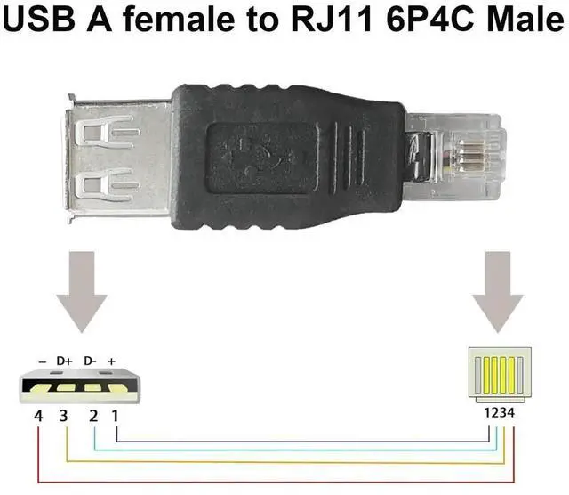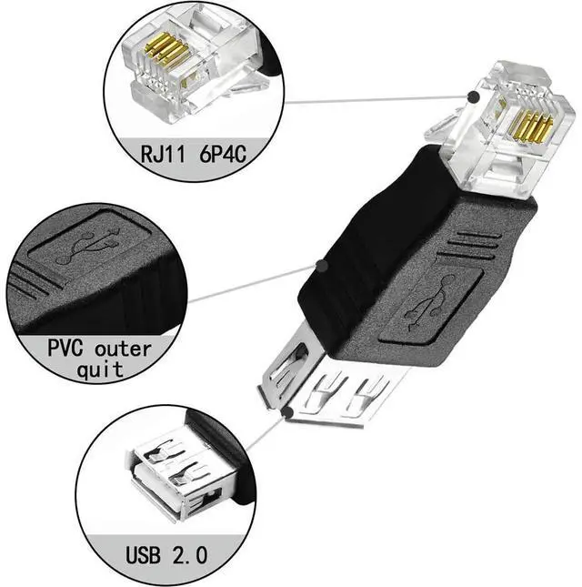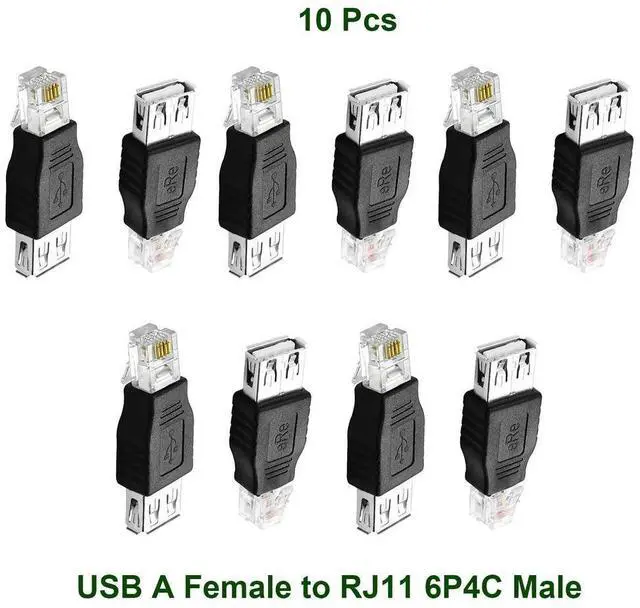 10pcs USB 2.0 Type A Female To RJ11 4 Pin 6P4C Male Ethernet Network Phone Connector Converter Adapter Fax Machine Modem