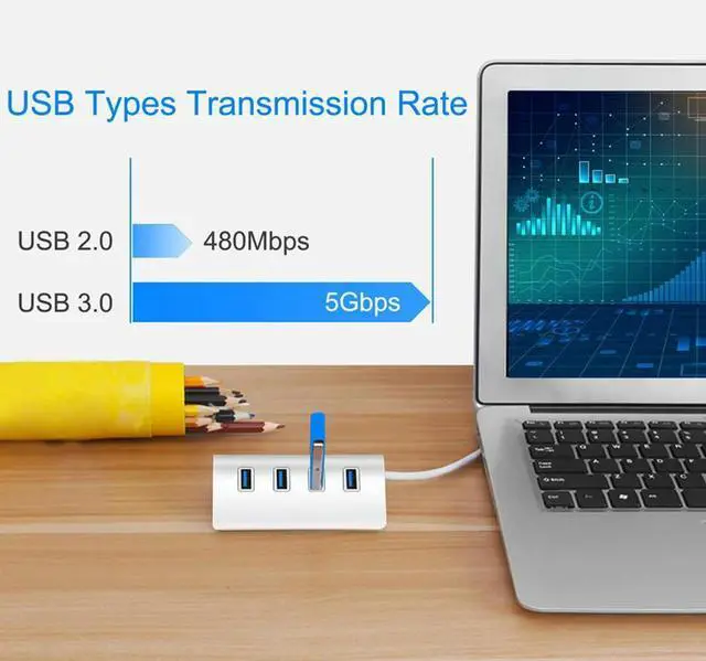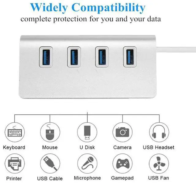 Aluminum Usb 3.0 Hub 4 Ports High Speed Multi Splitter Adapter Expander Laptop Computer Pc Office Hub Up To 5Gbps Accessories