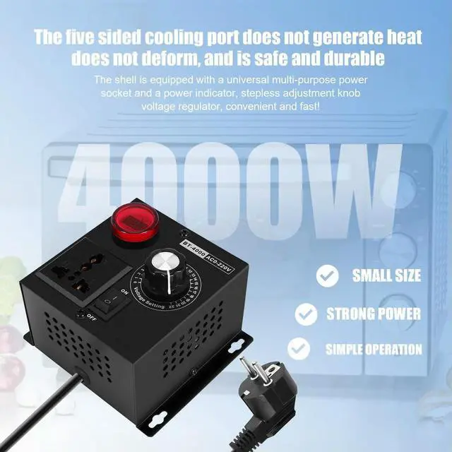 Ac220v 4000W Scr Electronic Voltage Regulator Temperature Motor Fan Speed Controller Dimmer Electric Tool Adjustable, Eu Plu