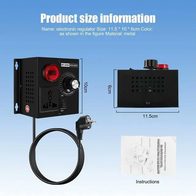 Ac220v 4000W Scr Electronic Voltage Regulator Temperature Motor Fan Speed Controller Dimmer Electric Tool Adjustable,Eu Plu