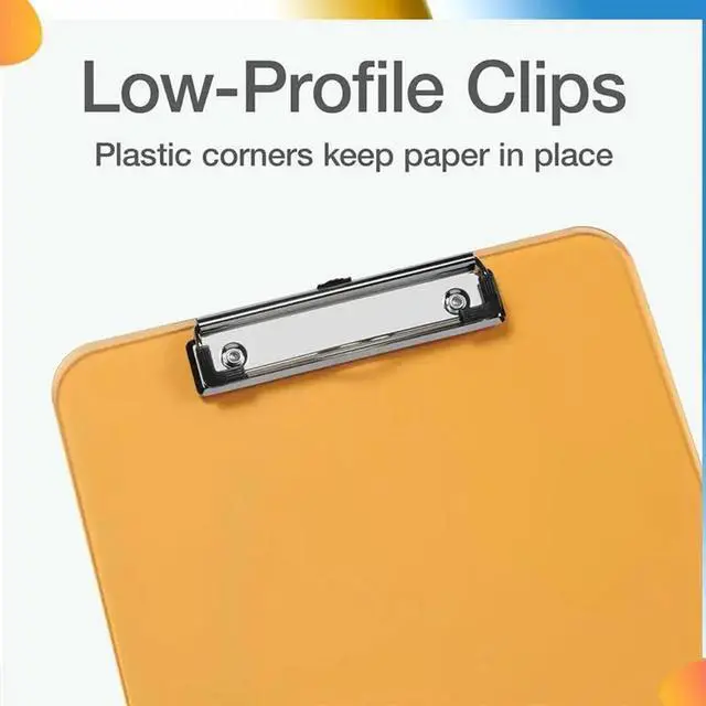 Plastic Clipboards, l Clip With Plastic Corners, Writing Surface With Hanging Loop, 12.5Inch X 9Inch, 6 Pack