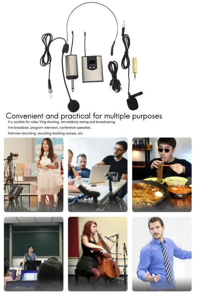 UHF Portable Wireless Headset/ Lavalier Lapel Microphone With Bodypack Transmitter And Receiver 1/4 Inch Output, For Live P