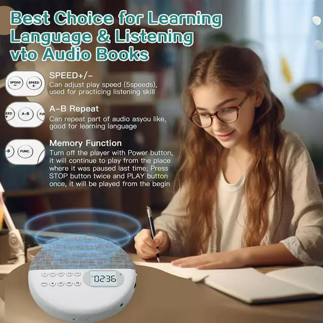 Multifunction Audio Player English Learning Machine Dual Stereo MP3 CD Player Fetal Education Machine Repeating Machine