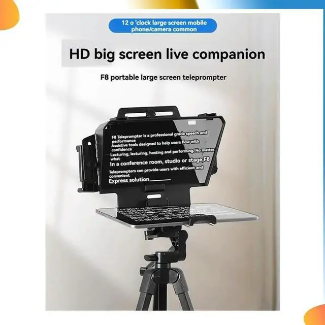 F8 Universal Teleprompter For Tablets Laptops phones Cameras For Live Streaming And Recording With Large Screen