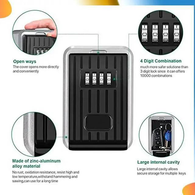 3X Lock Box 4 Digit Combination Waterproof Box Weather Resistant Key Hider With Resettable Code Key Wall Mounted