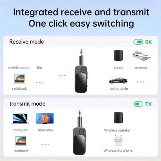 Bluetooth 5.4 Transmitter Receiver 2-In-1 Wireless Bluetooth Adapter Bluetooth Receiver Transmitter 2 To 2