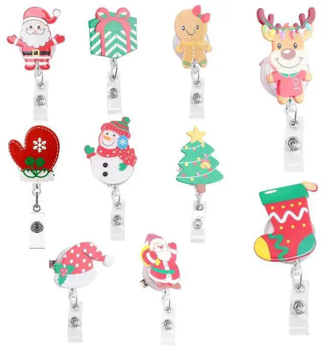 Christmas Badge Reel Felt Badge Holder, For Nurse Teacher Women Men Office Stocking Stuffer Ornament Gifts