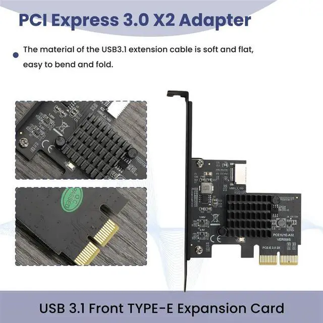 PCI-E 2X To USB3.1 A-Key Gen2 Front Type-E Expansion Card,10Gbps Type-E Internal 20-Pin Front Panel Connector Riser Card