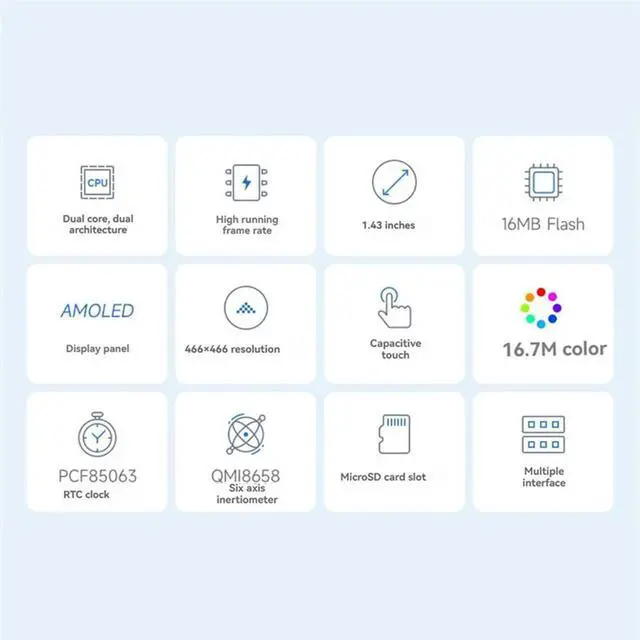 RP2350 1.43I nch AMOLED Touchscreen Development Board 466X466 Built-In6-Axis Sensor Forhmi LVGL