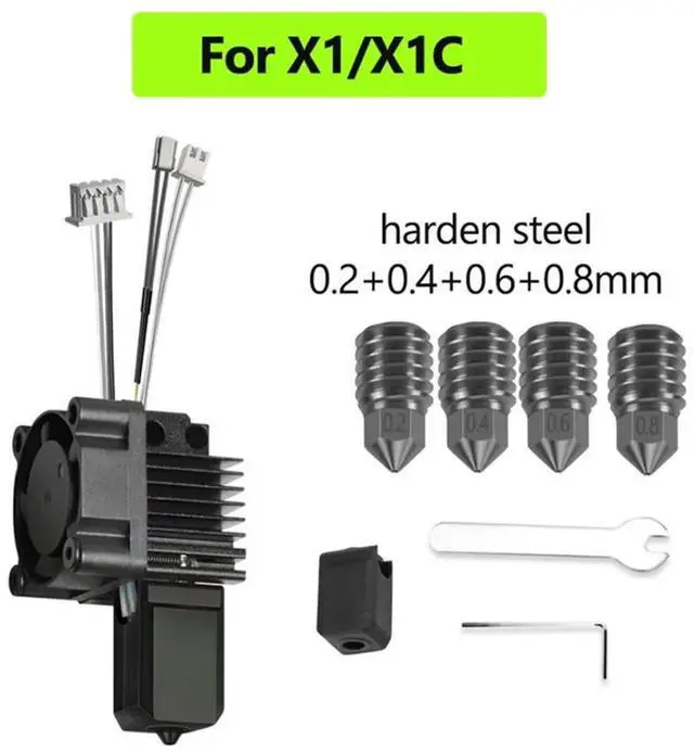 YOC-For X1 X1C 3D Printer Replacement Print Head Hardened Steel Nozzles Hotend Kit With Cooling Fan V2.0 3D Printing P