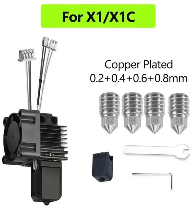 YOC-For X1 X1C 3D Printer Print Head With Copper Plated Nozzles, Hotend Kit Featuring Cooling Fan V2.0 3D Printing Par