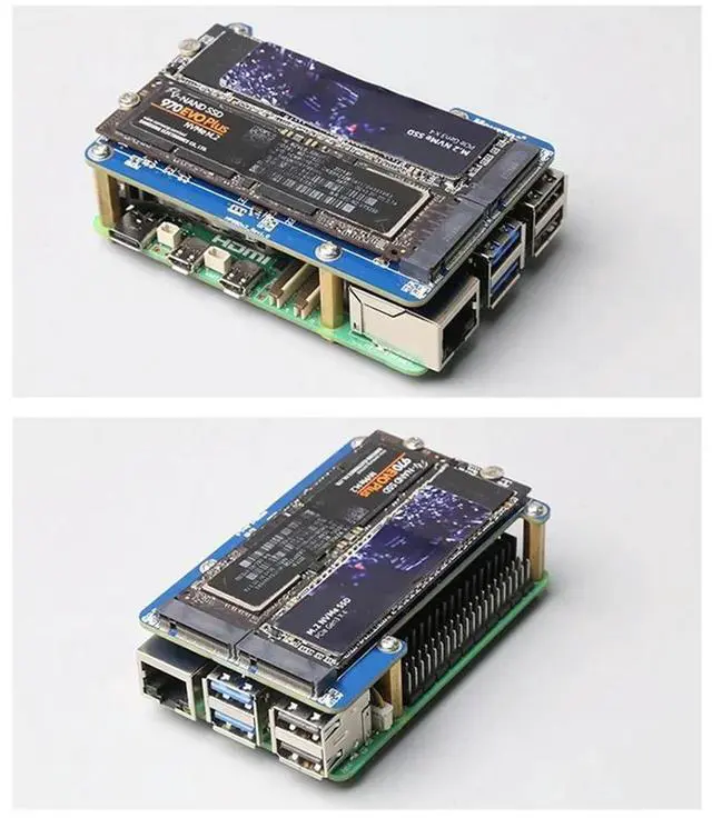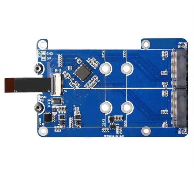 MPS2280D For Raspberry Pi 5 PCIE To M. 2 Dual NVME SSD HAT+Case+SSD/Pi5 Heat Sink Support 2280/2242/2230 SSD Replacement