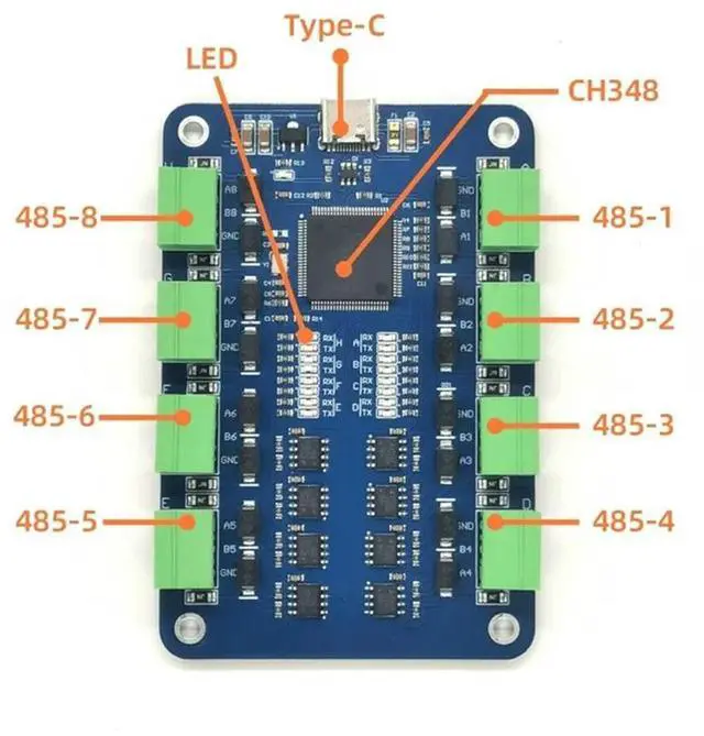 Type-C USB To 8-Channel RS485 Serial Converter CH348 RS485 Serial Converter For Independent Channel Short Circuit Protect