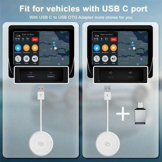 2PCS Wired Carplay Mirror Adapter For Carplay Mirror Dongle With PD For Converting Video To Car Display, Durable