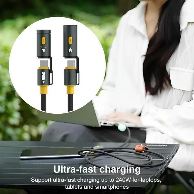 240W Braided USB C Cable with Lighter & LED Flashlight USB Type C Cable Outdoor Camping Fast Charging Cable for Camping & Light
