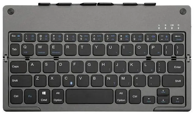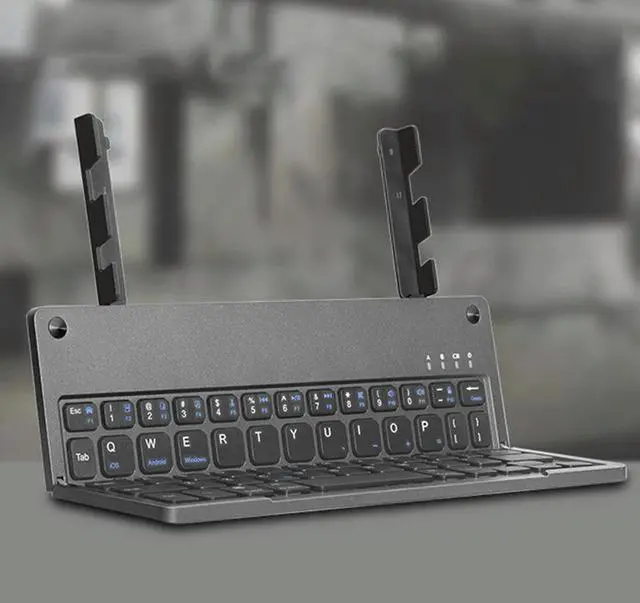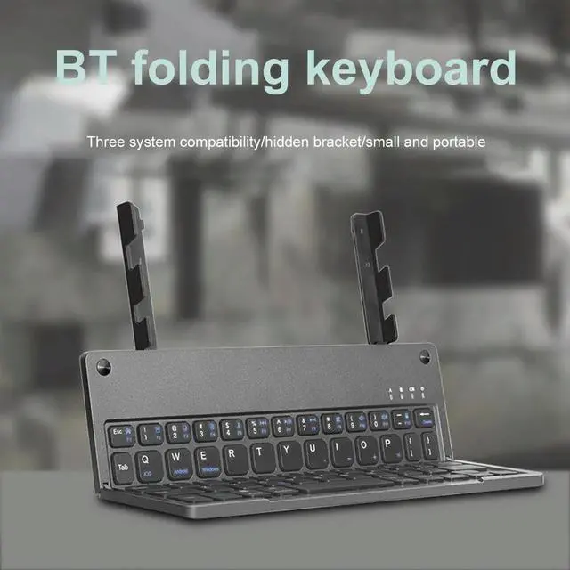 Folding Keyboard 3.7V Portable Mini Folding Keyboard with Rotatable Support Bluetooth-compatible for Phone Laptop Tablet
