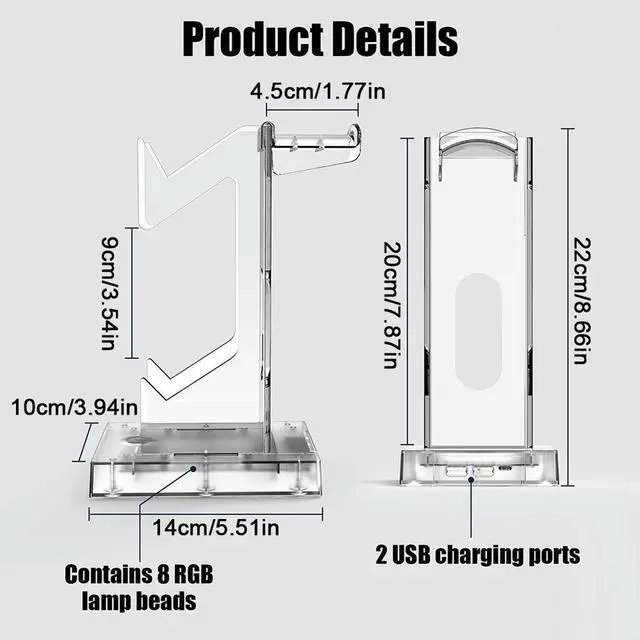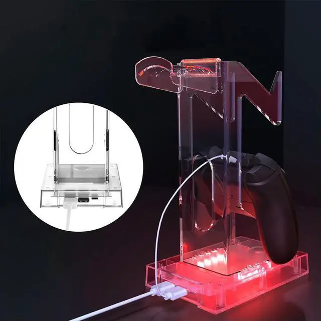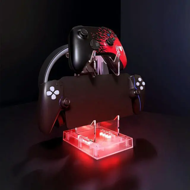 RGB Gamepad Rack Stand with 2 USB Charging Ports & Type-C Controller Holder Headset Stand Desktop Stand for Portal/PS5/Xbox