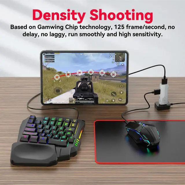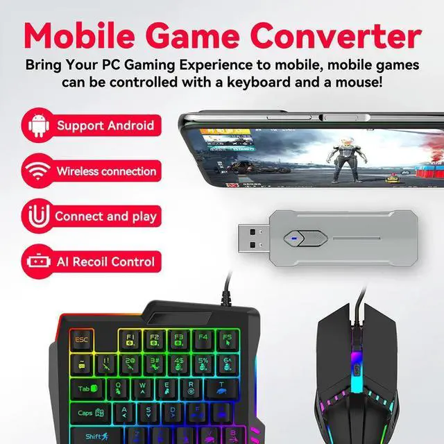 5 in 1 Mobile Game Converter Keyboard Mouse Gaming Set for PUBG Wired RGB Backlit Keyboard with Wrist Rest for Android System